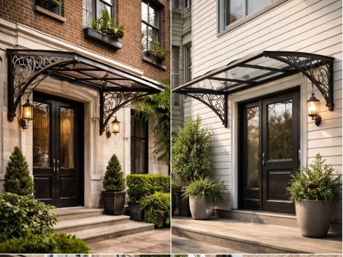 Виды и назначение навесных козырьков для дома
