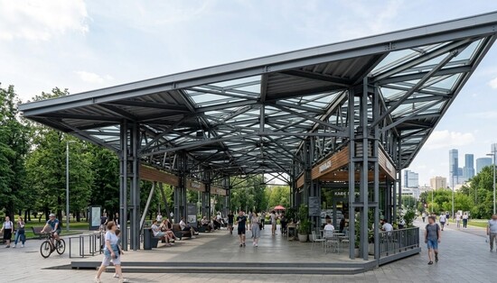 - Модульность. Павильон из металлоконструкций может быть спроектирован как модульная система, что позволяет изменять размеры, конфигурацию в зависимости от потребностей.